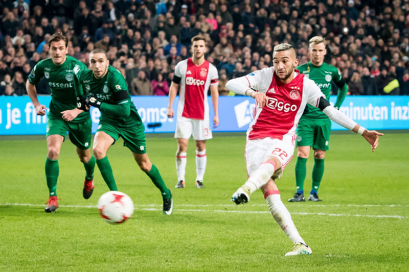 Ziyech is de derde strafschoppennemer al dit seizoen. Davy Klaassen was nummer één, maar miste uit tegen Panathinaikos, Lasse Schöne deed hetzelfde in de thuiswedstrijd tegen Excelsior.
