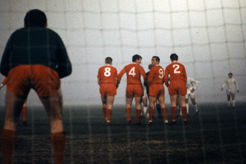 Daar staan ze, met z’n vijven: Ajaxvoorzitter Jaap van Praag, de Italiaanse scheidsrechter Antonio Sbardella, Uefa-waarnemer Leo Horn, Liverpoolcoach Bill Shankly én journalist Wim Jesse. Op de middenstip van het Olympisch Stadion, turend door de mist, op zoek naar iets dat op een doel lijkt.