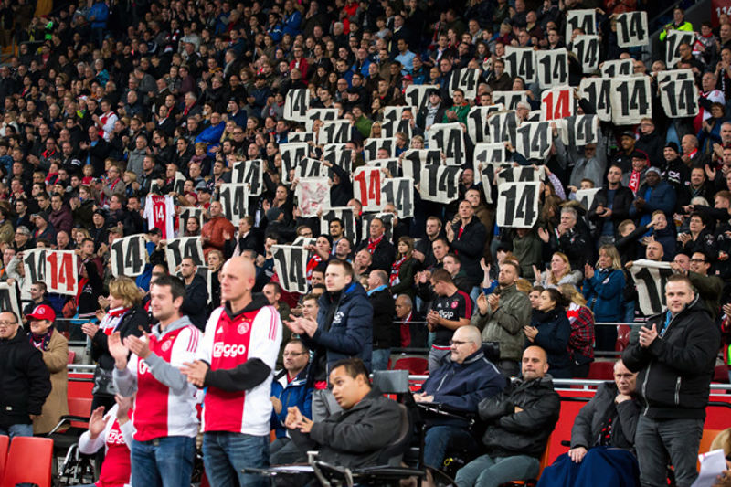 Het is niet voor het eerst dat in de veertiende minuut wordt stilgestaan bij Cruijff. Dat gebeurde eind oktober ook al eens, bij alle wedstrijden in het betaalde voetbal. Het idee was toen om de nummer veertien alle steun te bieden die hij kon gebruiken tijdens de behandeling van zijn ziekte.