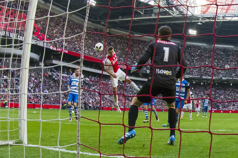 Hij was niet de eerste keeper die moest vissen na een uithaal van Arek Milik. En hij is vast ook de laatste niet. Mickey van der Hart had het idee dat hij goed stond opgesteld, maar de nummer negen van Ajax legde de bal toch weer gewoon in het net. “Dan kun je alleen maar klappen.”