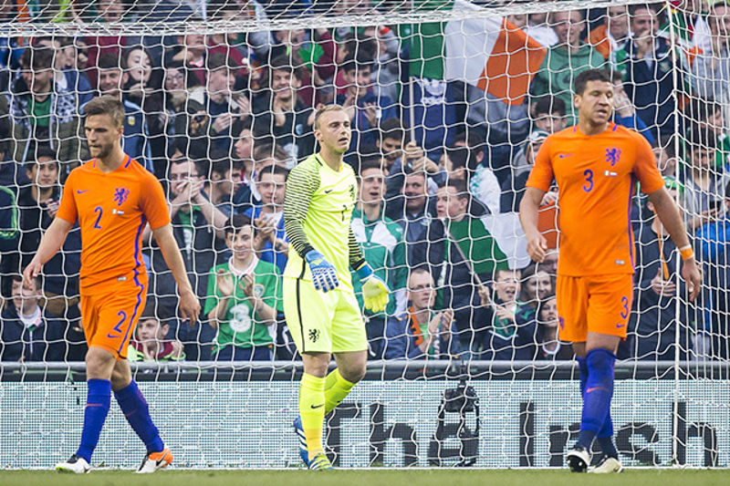Ik heb ’t ook nog effe geprobeerd met Oranje. Oefenwedstrijd tegen de Ieren. Bazoer is minder stoer in dat elftal. En het clubtenue van keeper Cillessen vind ik mooier dan zijn pak in het nationale elftal. Het werkte niet. Een beetje alsof je een stevige verslaving aan nicotine en tabak probeert op te vangen met chocolade-sigaretjes.
