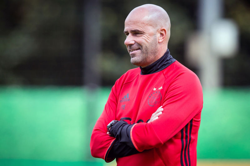 Als je de eerste foto's van Peter Bosz eens goed bekijkt, dan zie je dat er iets aan de hand is met de mouwen. En met de kraag trouwens ook. De mouwen zijn half rood en half zwart, waarbij het zwarte deel ook nog eens van een soort ondershirt lijkt te zijn gemakt.