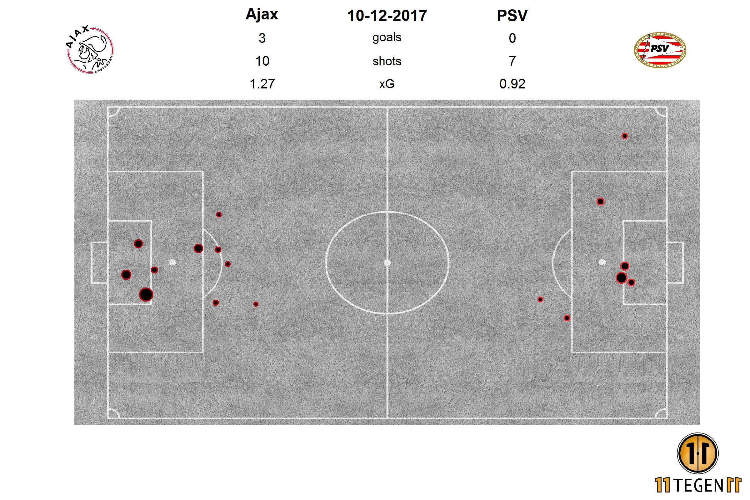 Alles bij elkaar kwam Ajax tot 10 serieuze schoten op doel, bij PSV tikte de teller dankzij de slotfase nog de 7 aan. Tot drie maal toe werd geprobeerd om Onana van dichtbij te passeren, zodat de Eindhovenaren wel wat aardige mogelijkheden kregen. Gelukkig is Luuk de Jong niet zo heel lekker op schot, anders had de topper misschien een vervelend staartje gekregen.