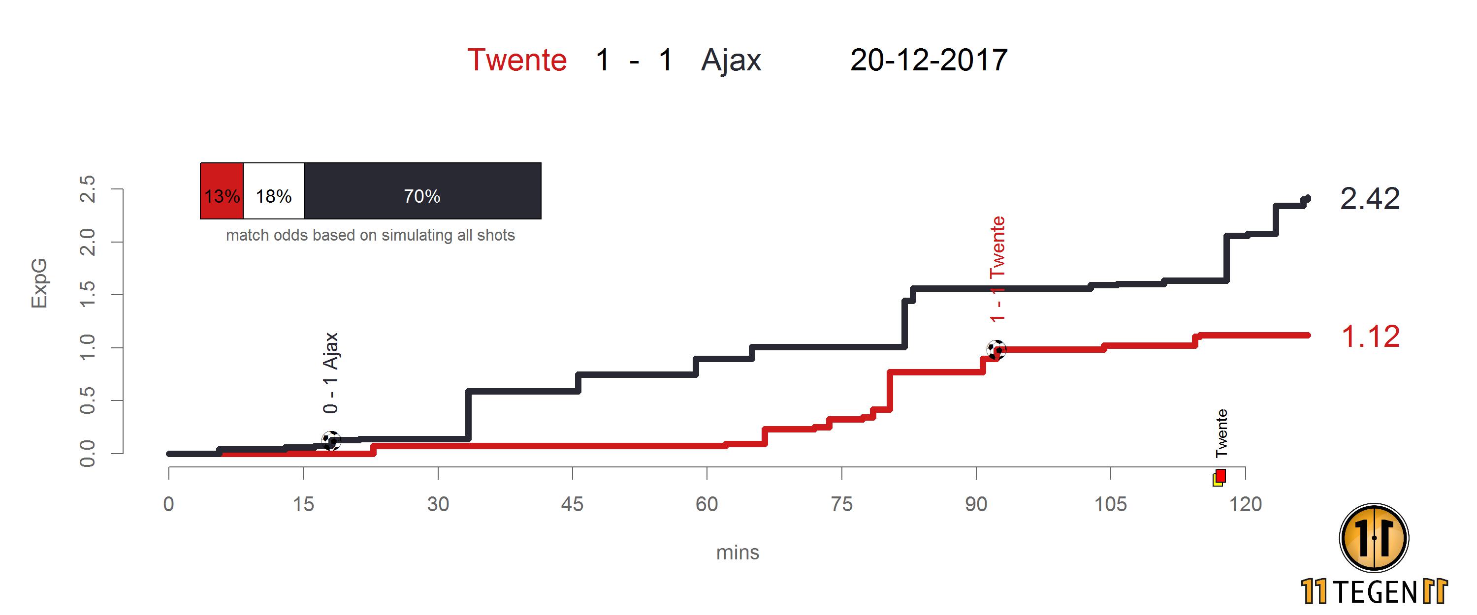 Dat was Ajax, zoals zo vaak. Zeven van de tien keer zou Ajax op basis van simulatie deze wedstrijd hebben gewonnen. Helaas waren grote kansen niet aan Kasper Dolberg besteed en leverde David Neres dit keer geen bijdrage aan de productie van Ajax, wie weet was dit bekerpotje dan toch anders afgelopen. Maar, zoals gezegd... Toen waren de Ajacieden de controle al kwijt en vormden ze de onderliggende partij.