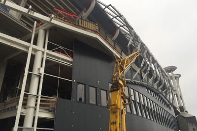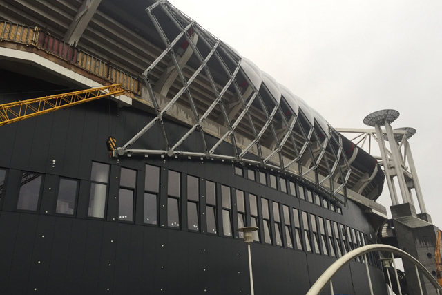 Een ding wordt alvast met de dag duidelijker: de nieuwe omloop van de tweede ring wordt breed, heel erg breed. Supporters krijgen straks voor, tijdens en na de wedstrijd beduidend meer ruimte om de benen te strekken. De nieuwe ruimte onder die brede omloop wordt ook prima benut. Daar komen allerlei zalen voor de zakenmensen onder ons.