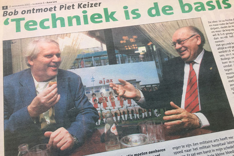 Clubicoon Piet Keizer overleed gisteren op 73-jarige leeftijd aan longkanker. Veel interviews gaf de legendarische linksbuiten niet. Dat deed hij wel in de Ajax Life-rubriek Bob Ontmoet, in 2002. Een blik in Keizers voetballeven aan de hand van vijf specifieke onderwerpen die beide clubiconen destijds bespraken.