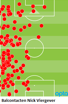 Afbeelding 1: De 109 balcontacten van Viergever tegen Schalke 04 in kaart gebracht.