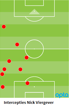 Afbeelding 3: Een overzicht van de intercepties van Viergever verspreid over het veld.