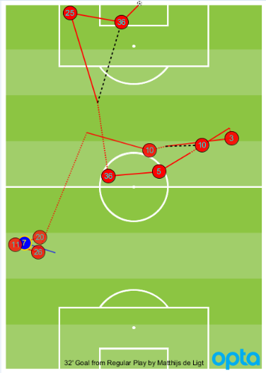 Afbeelding 1: Een weergave van de opbouw van de 2-1 van De Ligt tegen Heerenveen.
