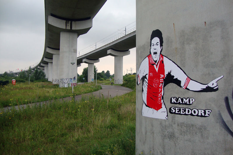 Maar het meest trots ben ik op mijn stencilding van Jari Litmanen, afkomstig uit de keuken van Kamp Seedorf. Elke ochtend is hij de eerste die ik tegenkom. “Goedemorgen Jari,” zeg ik tegen het portret. Waarna ik “Hyvää huomenta Nick” tegen mezelf zeg. Dat is, je verwacht het niet, Fins voor “goedemorgen, Nick.”