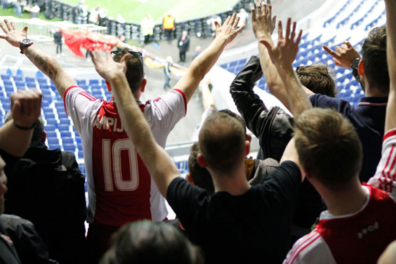 Enigszins verbaasd zeg ik tegen hem dat het zo lekker is dat we naar Stockholm gaan en dat we het zo onnodig spannend hebben gemaakt. “Wie heeft er eigenlijk gescoord voor Ajax,” zegt hij. Nog verbaasder dan eerst roep ik de naam van onze Deense spits en vraag of hij de wedstrijd dan niet heeft gezien. Misschien een domme vraag, maar zo vlak boven Lyon in een Ajaxshirt mag je daar toch wel van uit gaan, leek me zo.