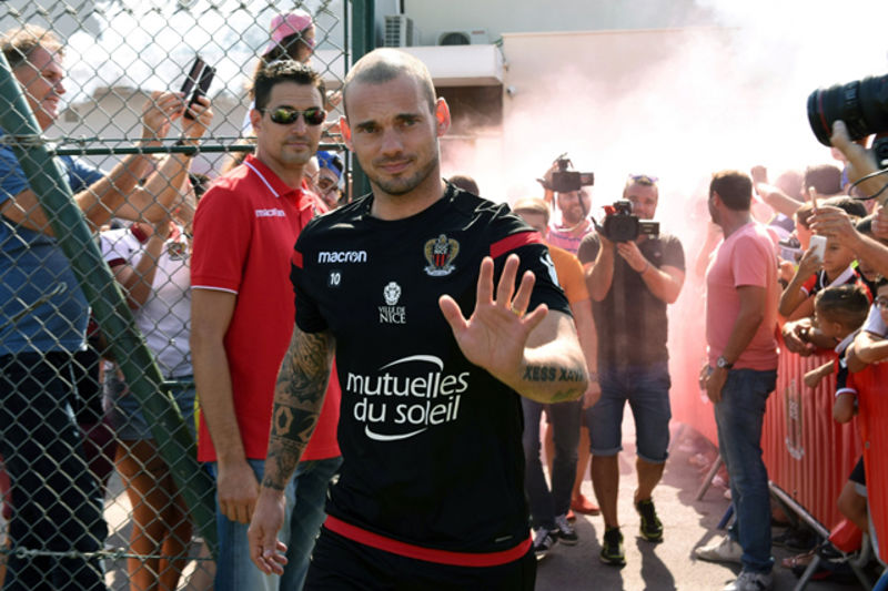 Sneijder tekende bij Nice een contract voor één seizoen, met een optie voor een tweede jaar. “Als je 33 bent, weet je dat de topclubs niet in de rij staan. Ik kon naar China en het Midden-Oosten, maar hield Oranje in mijn achterhoofd. Ik wil niets liever dan volgend jaar naar het WK in Rusland.”