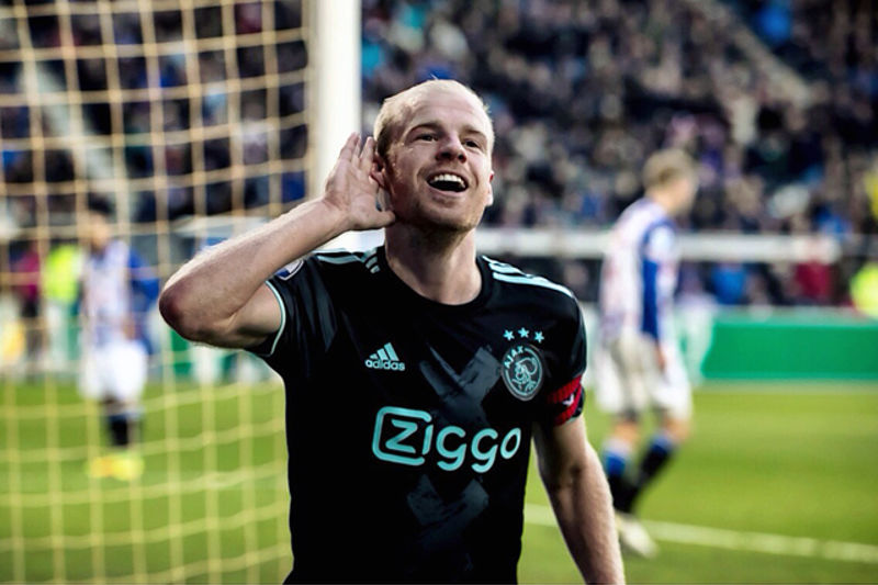 Er moest dus een oplossing gevonden worden. En die oplossing is er, door het uitshirt van vorig seizoen mee te nemen. Ajax speelde vorige keer in het Abe Lenstra Stadion ook in het uitshirt met de drie grijze Andreaskruisen en blauwe opdruk. Dankzij Davy Klaassen won Ajax met 1-0.