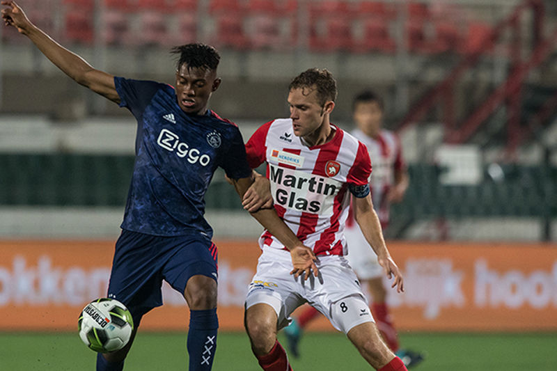 Wie te laat binnen kwam, betaalde daar de prijs voor. Binnen acht minuten stond Jong Ajax namelijk al met 0-2 voor. De eerste goal was meteen de mooiste. Dennis Johnsen stuurde Noussair Mazraoui weg met een afmeten steekbal, laatstgenoemde bleef knap voor zijn man en legde de bal af op de instormende Dani de Wit. Deze kon de bal simpel intikken en scoorde hiermee zijn eerste goal in het betaald voetbal.