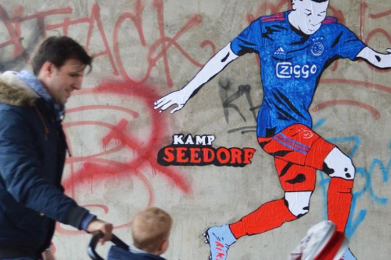 Wij draaien er niet omheen: wij zijn dol op de kunststukken van Kamp Seedorf. In aanloop naar de belangrijke klassieker op zondag 21 januari hebben de mannen 'samba kid' Neres vereeuwigd op de muur van een viaduct. Hoewel we nog maar moeten afwachten of Neres er inderdaad lang blijft hangen. Het wil nog wel eens voorkomen dat een fraai artwork snel van een muur gespoten wordt.
