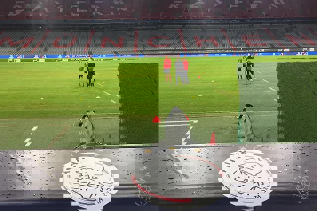 Toen de laatste pullen leeg op tafel werden gezet, kon koers worden gezet richting het onderkomen van FC Bayern München. Eerste doel: omwisselen en met een wedstrijdkaartje op zak de tribunes beklimmen om de laatste training van Ajax te volgen.