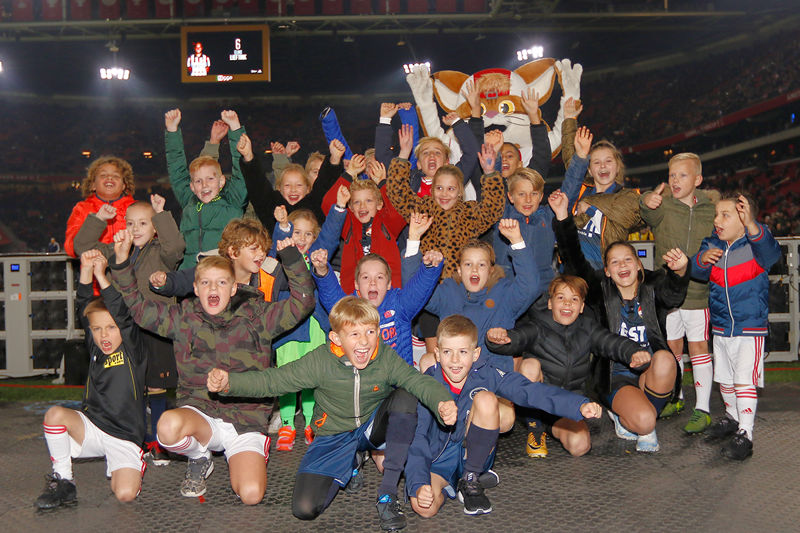 Wil jij ook een keer als mascotte mee met een speler het veld op? Of zelf scoren in de Arena? Sluit je dan aan bij de Ajax Kids Club en wie weet ben jij er de volgende keer bij.