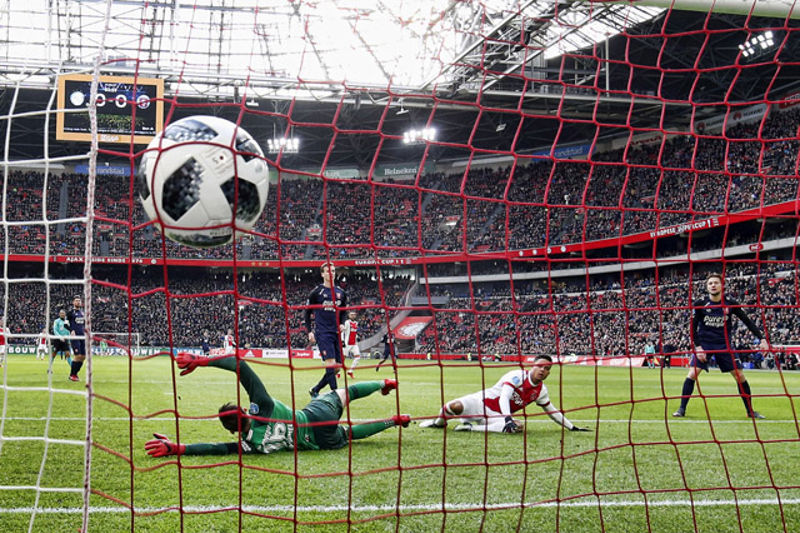 Ajax had binnen tien minuten zomaar met 4-0 voor kunnen staan. In een paar minuten tijd kreeg Donny van de Beek drie kansen, waarbij zijn eerst kans de grootste was. Hij stond oog in oog met keeper Joël Drommel, maar leek uit te glijden. Daardoor ging de bal hoog over. Een minuut later schoot hij de bal op Drommel op aangeven van Kluivert, bij poging drie kwam hij een paar centimeter tekort om een voorzet van Neres binnen te tikken.