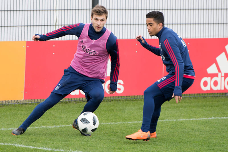 Maar goed, we tellen de dagen af naar zondag. Terwijl de spelers van Ajax 1 woensdagmorgen nog even op zich lieten wachten, stonden de jonkies Mitchel Bakker, Dennis Johnsen en Dani de Wit al op het trainingsveld. Zij mochten met de a-selectie meetrainen en dat gold ook voor de hiervoor in elk geval niet geschorste Teun Bijleveld.