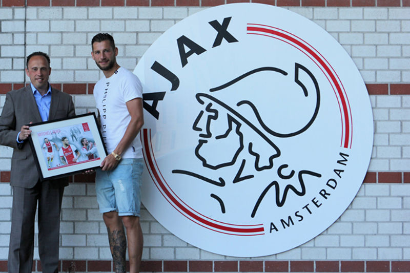 We hadden de lijst nog niet aan Dijks overhandigd en de sympathieke verdediger maakte hiervoor graag even tijd. Zo ontving hij uit handen van onze directeur Fabian Nagtzaam een mooi geschenk aan de muur, als herinnering aan zijn Ajaxjaren.
