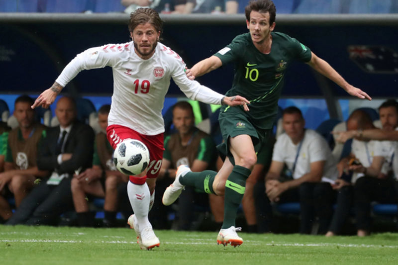 Met Lasse Schöne in de startopstelling en Kasper Dolberg op de bank heeft Denemarken zijn tweede WK-wedstrijd gelijkgespeeld. Na eerder Peru (1-0) te hebben verslagen, bleef het tegen Australië steken op 1-1.