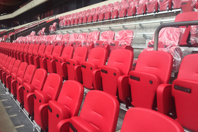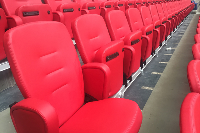 De hoofdtribune was namelijk nog niet klaar. Hier waren nog blauwe en grijze lederen zitjes vastgeschroefd. Deze zijn er nu ook allemaal uitgehaald en vervangen door nieuwe rode leren stoelen. Eigenlijk had het geheel al voor aanvang van dit eredivisieseizoen klaar moeten zijn, maar een en ander liep wat vertraging op. Ach, zo lang van uitstel maar geen afstel sprake was, zo dachten we.
