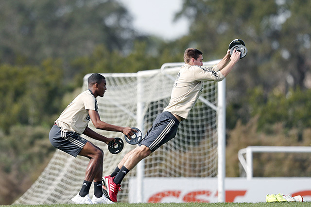 Matchday of niet, de Ajacieden werkten zich tijdens een ochtentraining gewoon in het zweet. De oefenwedstrijd tegen Flamengo in het Orlando City Stadium staat in de avonduren op het programma.