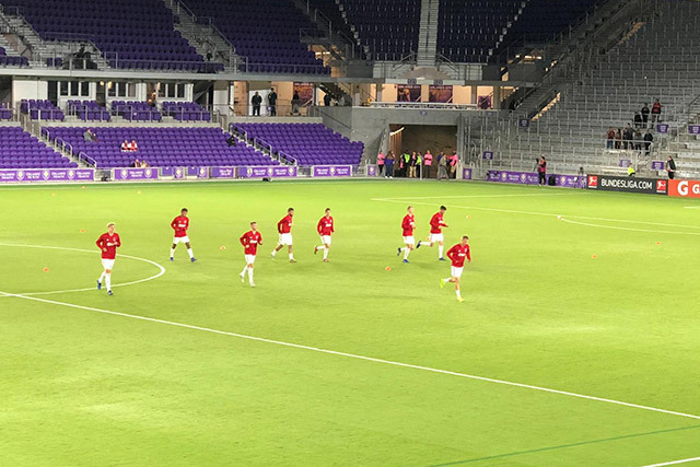Het duurde lang voor het een beetje sfeervol werd in het Orlando City Stadium, want het publiek kwam pas laat opdagen. Uitverkocht was het bij lange na niet, maar toch was het allemaal best geinig.