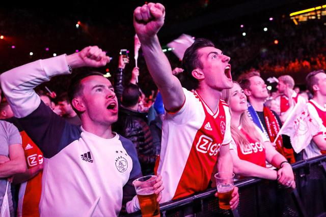 De eerste heuse bierdouche in de Ziggo Dome is er één die de geschiedenisboeken niet zal halen. Het doelpunt van Nico Tagliafico wordt afgekeurd. Terecht? Het bewuste spelfragment blijft tot ver na de wedstrijd besproken. Als Hakim Ziyech de gelijkmaker tegen het net prikt, ontploft niet alleen de Arena. Ook de Ziggo Dome staat volledig op zijn kop.