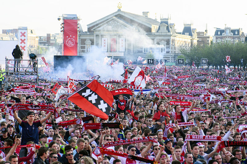 Je kunt je dus voorstellen dat met de huidige gekte rond Ajax de wens onder supporters leeft om bij elkaar te komen op het Museumplein en daar een feestje te bouwen, zoals twee jaar geleden al eens gebeurde rond het spelen van de Europa League-finale. Maar het is nu nog te vroeg.