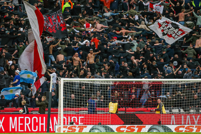 We wisten na een uurtje dat er iets bijzonders moest gaan gebeuren. De Ajacieden waren gereduceerd tot tiental en PSV klopte stevig op de deur. Het zag er even zeer slecht uit, maar toen wierp het publiek zich op als elfde man. Dat bleef niet onopgemerkt.