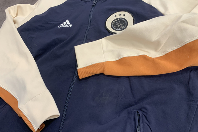 Adidas brengt het jasje onder de noemer 'VRCT-jacket' op de markt, zoals je hier kunt zien. In de fanshop van Ajax wordt het logo van de club netjes aangebracht, waardoor het plots een Ajaxjacket is. De jas is overwegend wit met marineblauw van kleur, met nog wat oranje accenten en is alleen in volwassen maten verkrijgbaar.