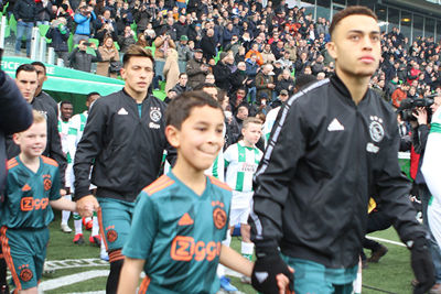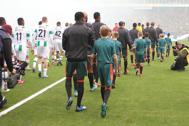 De winnende Ajaciedjes van onze Ajax Kids Club waren helemaal naar Groningen gekomen om daar met hun helden mee het veld op te mogen lopen. Dat was best spannend, maar het ging allemaal hartstikke goed. Wat niet zo goed ging was de wedstrijd. De Ajacieden verloren met 2-1.