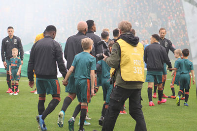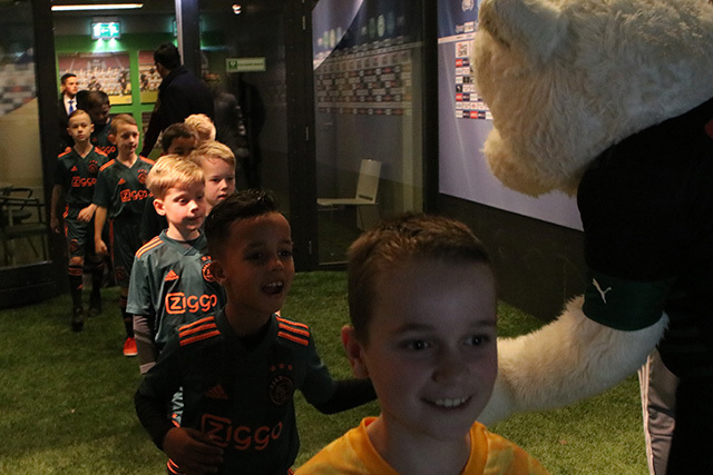 En zo is het natuurlijk ook. Onze mascottes beleefden natuurlijk evengoed een bijzondere middag, want hoe vaak sta je nou in een spelerstunnel met je grote helden? Nou ja, precies, nooit! Dit keer dus wel en dan kun je er maar beter van genieten, hoe spannend het ook is. Want ja, er staan ook veel fotografen en cameramensen.... Misschien kom je wel op televisie!
