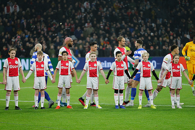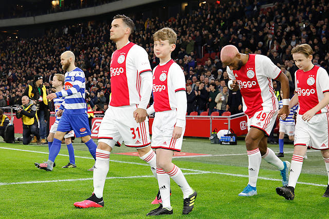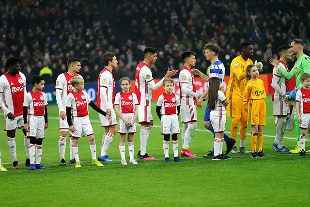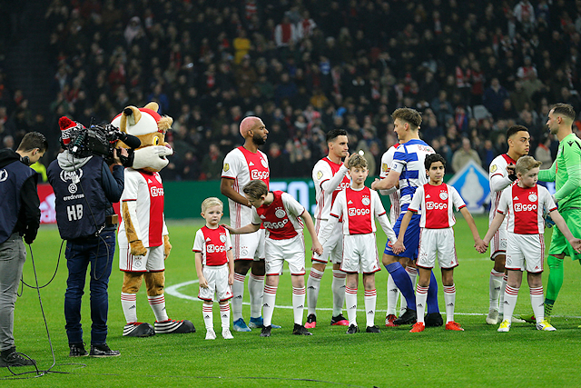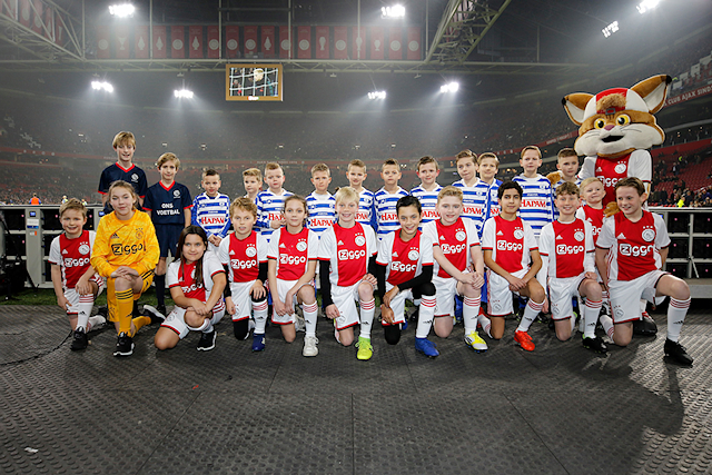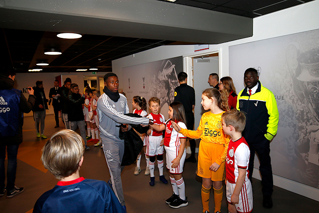 Ondertussen verzamelden de Ajax Kids Clubmascottes zich in de spelerstunnel, samen met Lucky. Daar was het wachten op spelers als Ryan Babel, Dusan Tadic, Nico Tagliafico en Siem de Jong. Ondertussen liepen wisselspelers als Quincy Promes en Klaas Jan Huntelaar voorbij voor de nodige high-fives.