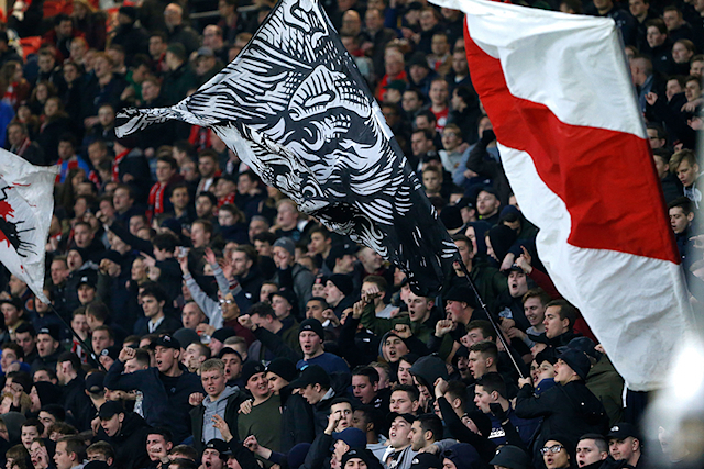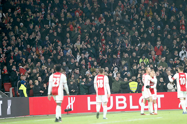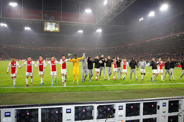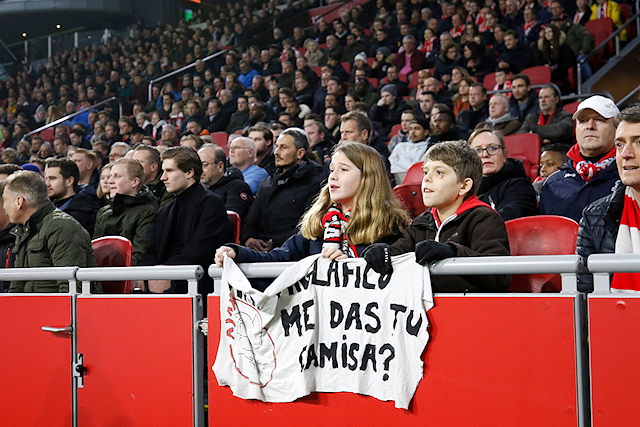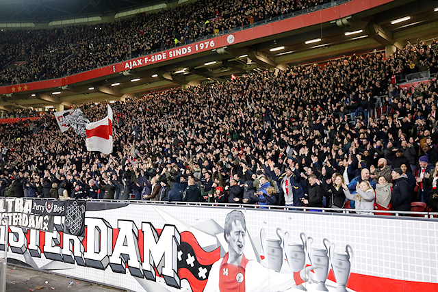 Dat Ajax het bordje 'uitverkocht' aan de Arenapoort kon hangen voor een bekerpotje tegen Spakenburg was al tof, maar nog toffer was dat al die toeschouwers er een gezellige avond van wilden maken. Echt hoor, de sfeer zat er meer dan uitstekend in! Zingen en springen. Voor wie? Voor Ajax Amsterdam.