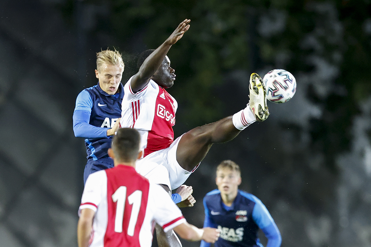 Jong Ajax won vrijdagavond met 3-2 van Jong AZ, maar dat ging zeker niet zonder slag of stoot. Nadat de beloften met tien man kwamen te staan, werden alle zeilen bijgezet om toch een overwinning binnen te slepen. Zo versierde Brian Brobbey een strafschop, al hoewel de spits zich zelf van geen kwaad bewust was.