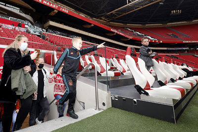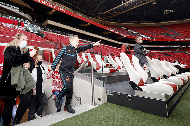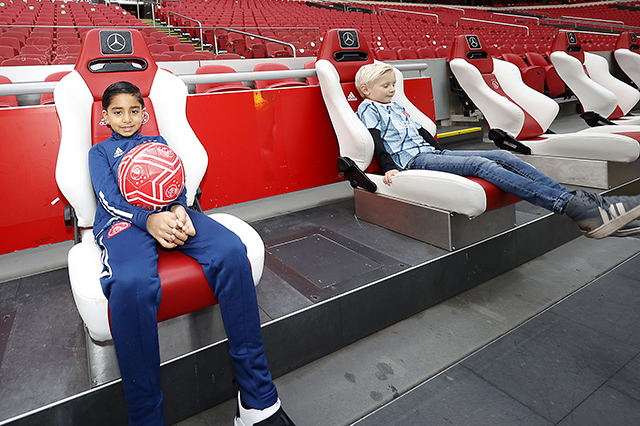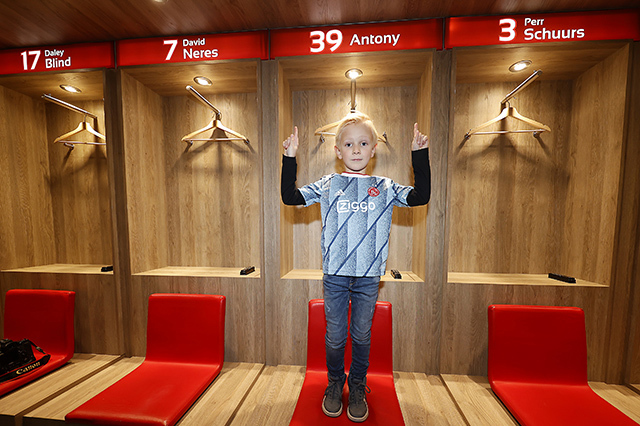 Daarna snel naar de Ajaxkleedkamer. Eens zien hoe dat stoeltje van Davy Klaassen of David Neres zit. Een potje voetballen in het stadion? Waarom niet, we zijn er toch! En het is ook wel fijn om de spanning eruit te ballen, want we zagen wel wat zenuwachtige koppies.