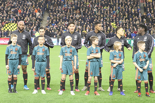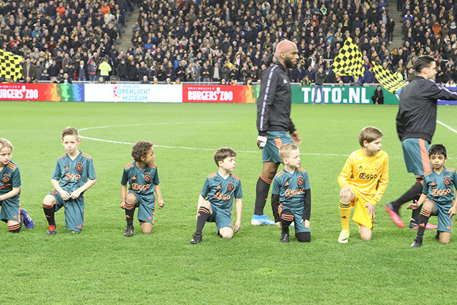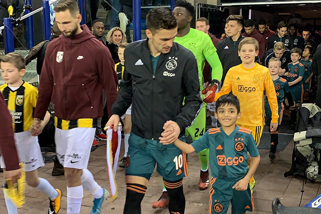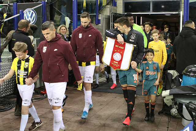 Nee, want dromen stonden op het punt om uit te komen. Want ga maar na, je loopt niet elke dag het veld op met Dusan Tadic, Donny van de Beek of Sergiño Dest. Een latertje werd het wel, want de kwartfinale tussen Vitesse en Ajax begon pas om 20.45 uur, waardoor onze mascottes wel superlaat op bed lagen. Nou ja, dat mag best een keer. En sowieso scoorden ze mooie verhalen voor op school.
