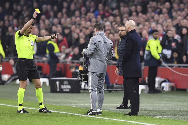 Na een kwartier kregen beiden coaches geel toen het langs de lijn wat onvriendelijk werd. Ten Hag daarover: “Ik kom voor mijn spelers op. Daar moet de trainer van de tegenpartij zich niet mee bemoeien.”