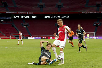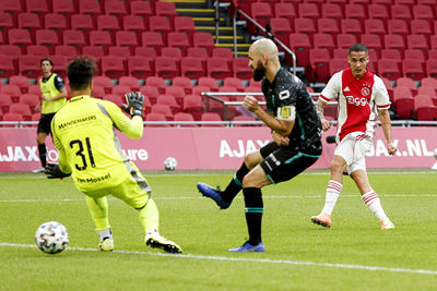 We hebben er vijf lange maanden op moeten wachten... Maar er weer wordt gevoetbald! Echt waar, het is fantastisch! Of, nou ja, eigenlijk is het nog niet fantastisch omdat Ajax uit nood moet spelen in een leeg stadion. Laten we het zien als een eerste stap. Op naar meer! Op naar een fotoverslag.