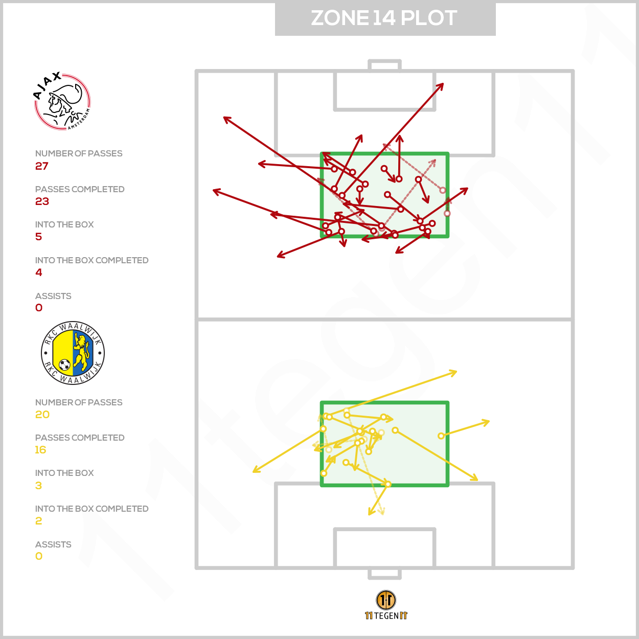 Ondanks de nog niet optimale finetuning en ondanks de weinige voortzetting vanuit de aanvallers (check de passmaps nog een keer) is het grappig om te zien dat twee van de drie goals alsnog tot stand kwamen vanuit de halfruimtes. Dit hoeft niet altijd via buitenspelers te gebeuren. Gelukkig maar, want vooral Antony had niet zijn dag.