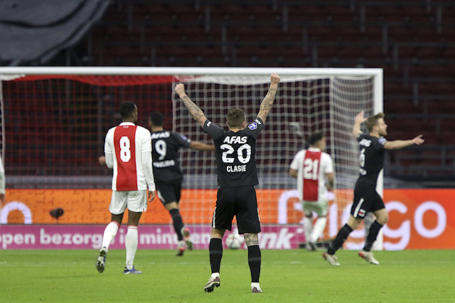 Fotoverslagen zonder supporters erop vinden we op voorhand al niet leuk, maar als Ajax dan ook nog eens zo labbekakkerig speelt als tegen AZ... Tja, dan is het helemaal stom. Toch laten we ons niet kennen en verzamelden wedstrijdbeelden van de 1-2-nederlaag in eigen huis. Zucht.