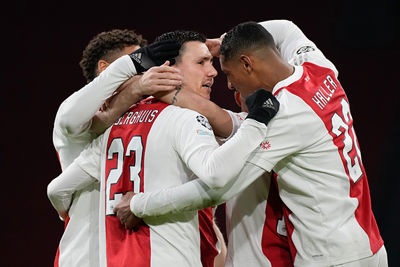 We zijn niet van de juichpolitie, maar we kunnen inmiddels stellen dat de juichfoto’s van Ajax’ perfecte groepsfase een fors fotoboek kunnen vullen. Ook tegen Sporting CP (4-2) was het weer goed raak. Er werd op het veld veel gesprongen, maar op de tribunes helaas niet gezongen.