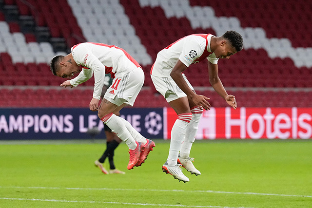 Niet alleen Berghuis sprong gaten in de lucht. Dat deed het samba-duo Antony-Neres eveneens. Twee keer zelfs! Voor rust na een fraaie treffer van Antony en na de pauze waren de rollen omgedraaid en drukte Neres weer eens doeltreffend af.