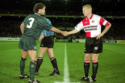 Wij pakten de doos met klassiekerfoto's van zolder, veegden er een dikke laag stof van af en selecteerden een bulk mooie of simpelweg iconische plaatjes. Deze serveren we hieronder voor je uit. We kozen puur voor confrontaties in de eredivisie, gespeeld op Rotterdamse grond.