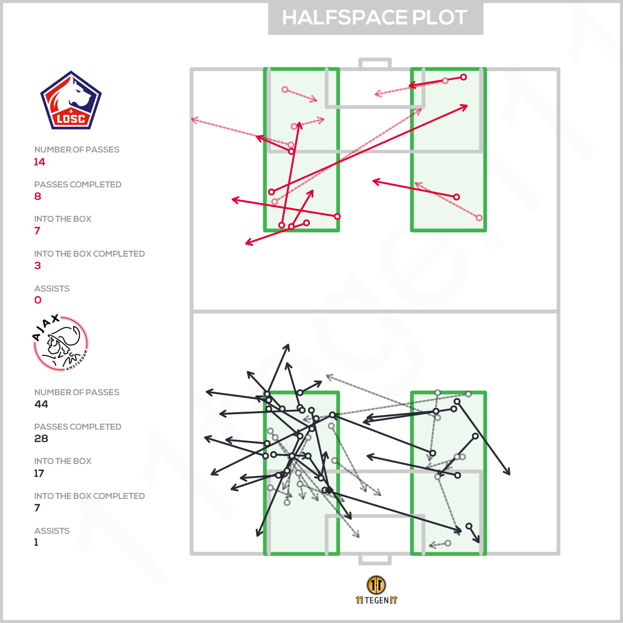Tegelijkertijd wordt meteen duidelijk dat Ajax tegen een goed verdedigende ploeg speelde. Dit omdat er 'slechts' 19 passes uit deze zone op het veld werden gegeven. Ter vergelijking: uit tegen Liverpool waren dit er 17, thuis tegen de kampioen van Engeland 18.