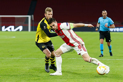 Waar wij met z'n allen thuis misschien helemaal gek werden, bleven de Ajacieden op het veld gelukkig rustig. En geconcentreerd. Davy Klaassen gaf na afloop aan geen moment 'stress' te hebben gevoeld, want hij voelde aan alles dat het goed zou komen. En dat kwam het, want hij brak weer eens de ban. Toen was het Zwitserse verzet gebroken en liep Ajax uit naar een gunstige 3-0-uitgangspositie.