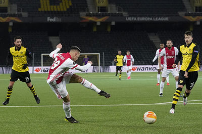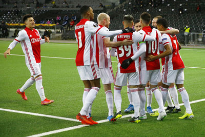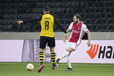 Wat hadden we er graag bijgeweest in Bern... In een ramvol uitvak de geboortedag van Ajax én plaatsing voor de kwartfinale van de Europa League vieren. Daarna nog lekker de stad in voor een afzakkertje. Hou vol Ajacieden, die tijd komt heus weer. Gelukkig was de fotograaf wel van de partij in Zwitserland, zodat we in beeld verslag kunnen doen van Ajax' verjaardagspartijtje.