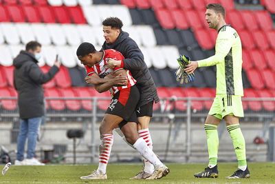 Wat restte was een wandeling naar de spelersbus, dwars door een 'erehaag' met Eindhovense pussy's. Wil jij ook iemand eren? Breng dan je stem uit op jouw Ajacied van de Wedstrijd.